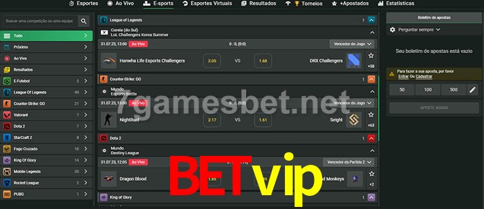 O betvip oferece uma grande seleção de opções de apostas em e-sports com probabilidades competitivas